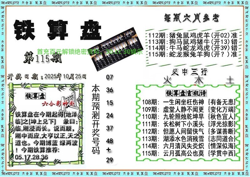 115期:七肖中特【鼠龙马猴兔猪羊】开:蛇01